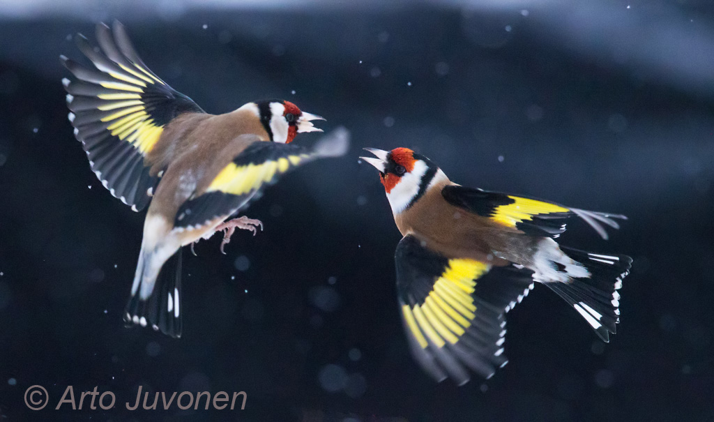 Tikli European Goldfinch Carduelis carduelis 17.1.2016, Porvoo, Finland Canon EOS 1D X, 600 mm, f/5.6, ISO-6400, 1/2000 sec. Tripod used |