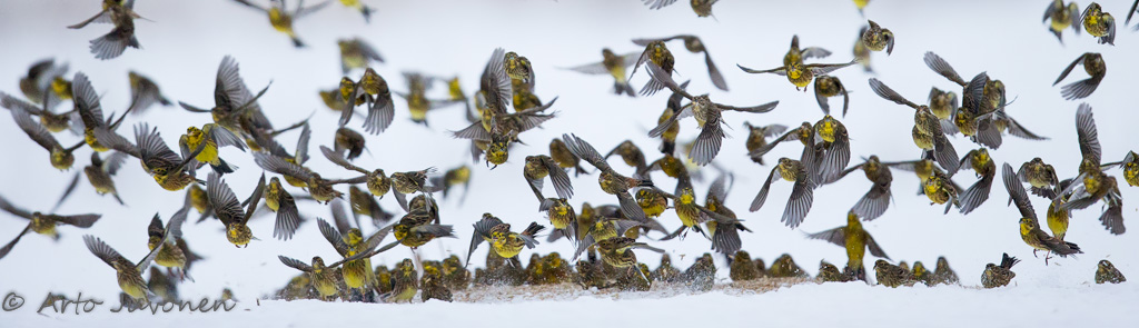 Edellisen viikkarin jälkeen on sellainen tunne, että tämän vuoden onnen kiintiö on täynnä. Kuluneen viikonvaihteen aikana ei syntynyt oikein yhtään mitään. Onneksi vanhemmasta varastosta löytyy jotain. Tykkään itse kovasti tästä panikoivasta keltasirkkuparvikuvasta. Se vaan näyttää niin kovin paljon paremmalta tällä 1900 pikselin ruudulla pienentämättömänä, kuin tähän viikkarikokoon supistettuna.