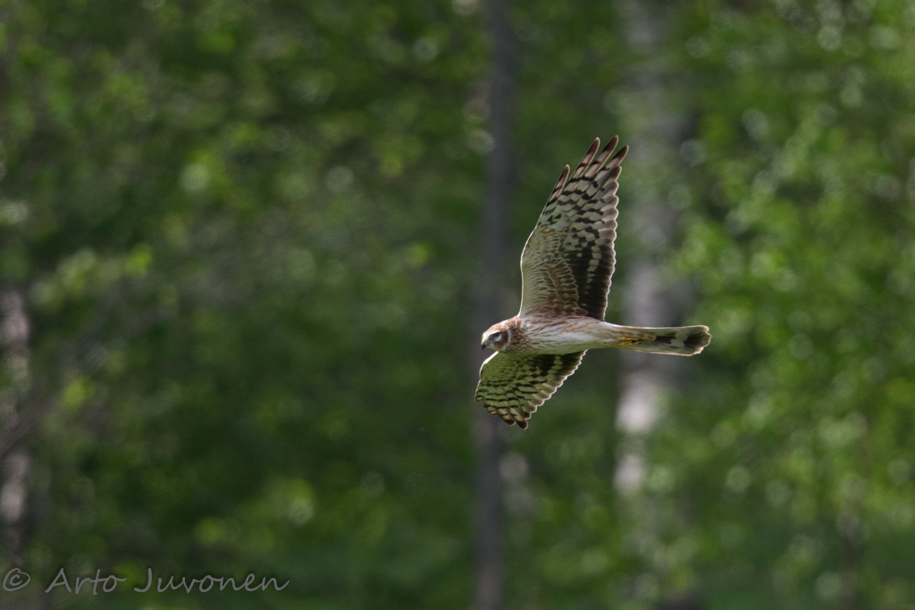 Tiistaina käväisin aamulla kojussa kulorastaita kuvaamassa. Yöksi ajoin Kanteleelle yrittämään auringonlaskun ja -nousun kuvia suohaukoista ja -pöllöistä. Niittysuohaukkanaaras istui myöhäisillan laiskasti pellossa, koirasta ei näkynyt. Aamulla molemmat saalistelivat pilvisessä kelissä. Suopöllöistä ei ollut mitään havaintoa! Keskiviikkoiltana löysin helmipöllön pesän haavan kolosta. Sitten seurasikin loman ehkä ainoa kuvaton päivä, masentavan harmaa ja sateinen torstai. Olisi kohteita varmaan löytynyt, mutta kehtaaminen ulosmenoon puuttui. Alkaako olla jo taisteluväsymystä? Perjantaipäiväksi luvattin merisumun väistyvän, kirkastuvaa ja kohtalaista itätuulta; eli merelle arktikaa katsomaan. Sumua oli vielä ilmassa, kun aamupäivällä saavuin avomeren äärelle. Näkyvyyttä oli kuitenkin riittävästi suunnata varsin lähellä mannerta sijaitsevalle Bysketille. Jo matkalla havaitut julmetun suuret hanhiparvet sumupilvien seassa kertoivat massamuuton olevan menossa. Ja kyllä sitä menoa olikin iltaan saakka. Suurin osa muutosta tapahtui Bysketin pohjoispuolelta, valtavirta etenkin sepelhanhien osalta Bysketin ja Lehtisen välistä. Lisäksi kuikkalintuja, alleja ja mustalintuja matkasi jatkuvana virtana. Iltapäivällä saari kietoutui vielä kerran sakeaan sumuun. Juuri sumun saapuessa riutalle lensi mustatiira, joka sitten poistui sumun väistyessä. Tyyni ilta suosi kellukuvauksia, mutta mitään erikoista ei syntynyt. Lauantaiaamuna tuuli navakasti, eikä kellun kanssa ollut asiaa vesille. Sitten vielä synkkä pilvirintama vauhditti minut kotimatkaan. Paluumatkalla pysähdyin Sarvilahden niittylle, jossa sirisi pensassirkkalintu. Otin kameran mukaan ja painuin äänen suuntaan. Samassa kuului myös viitasirkkalinnun säksätystä. Molemmat sirkkalinnut siis samalla paikalla. Yritin seurailla äänten lähteitä. jotka aina tuntuivat tulevan samalta suunnalta. Tappelivatko sirkkalinnut keskenään reviireistä, vai mistä oikein oli kyse? Seurannan päätteeksi tulin johtopäätökseen, että paikalla lauloi vain pensassirkkalintu, joka välillä vaihtoi laulun viitasirkkeliksi! Lauantai-iltapäivällä ajelin Tesjoen alajuoksun aina Kullafjärdenille saakka sähköperämoottorin puskemalla kumiveneellä. Se oli tosi hieno reissu! Valtavan upea lehto reunustaa jokea pitkältä matkalta. Poikkesin välillä metsään kuultuani veneeseen liian-korkealla-kuvattavaksi olleen pyrstötiaispoikueen. Metsän siimeksestä ylös tähystäessäni näin hitaasti idän suuntaan matkaavan haarahaukan. Sunnuntaiaamuna harjoittelin tulevaa työelämään siirtymistä nukkumalla peräti puoli seitsemään. Muuten toukokuun yöunet ovat päättyneet kolmen - neljän, joskus jopa viiden aikaan. Ja pääsääntöisesti ilman herätyskelloa. Aamupäiväälä kävin tarkistamassa tilanteen lapinpöllön pesällä. Emo oli yhä pesässä, joten maastopoikasia saanee odottaa vielä pari viikkoa. Tässä video huhuilevasta koiraasta, joka näin kertoo naaraalle saapuvasta myyrälähetyksestä. Taustalta kuuluu naaraan kerjuuääni. Lintuharrastajan varhaisemalla uralla olin hyvin arka väärinmääritysten suhteen. Nyt minulla on jo varaa tunnustaa olevani erehtyväinen. Ensitunnistus meni pieleen taas kerran. Tosin epäilin kameran läpi suorittamaani maastomääritystäni niin paljon, että minulla oli kiire tarkistaa muistikortin sisältö heti kotiin tultuani. Arosuohaukkanaaras se oli, jonka olin alustavasti määrittänyt sinisuohaukaksi. Selitystä tämä erehtyminen kuitenkin kaipaa: tappelin kameran taustametsään hakeutuvan tarkennuksen kanssa niin aktiivisesti, ettei havaintojen tekoon jäänyt kunnolla aikaa. No mutta silti, olisihan sirotekoisuus pitänyt tunnistaa vaikka paljain silmin... Näin paikalla lyhyesti myös sinisuohaukkakoiraan (ja tämä määritys on oikea!).