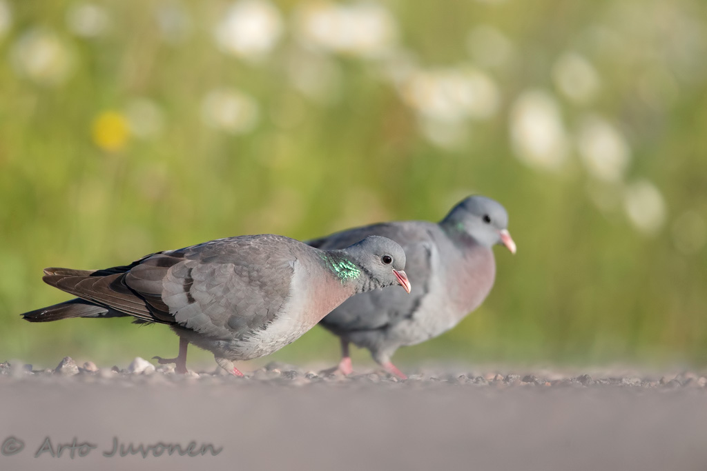 Kyyhkyt viihtyvät hiekkateillä tietyillä paikoilla. Tässäkin paikassa sepel- ja uuttukyyhkyjä on ollut niin kauan kuin muistan, paitsi parina kesänä uuden soran levityksen jälkeen. Silloin vanhaan hyvää aikaan, kun alueella pesi turturikyyhkyjä, myös ne viihtyivät samalla paikalla. Luulen, että kyyhkyt käyvät paikalla tiesuolan houkuttelemina, mutta voihan myös olla, että mutkapaikkaan lajittuu pintaan sopivan kokoisia kiviä ruuansulatusta helpottamaan.