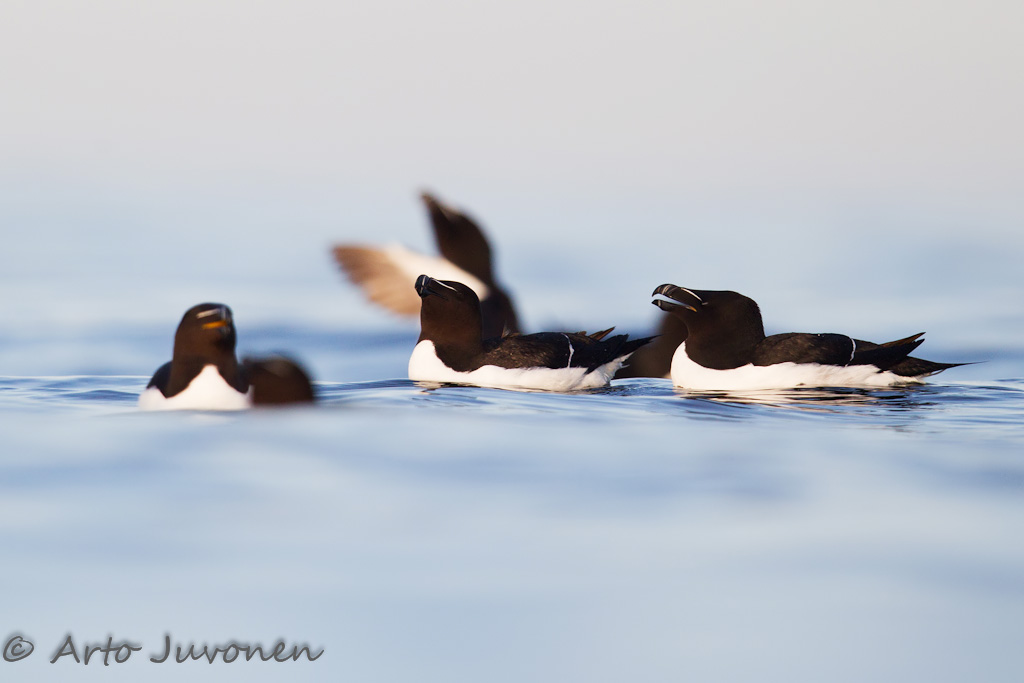Normally I save the best pictures in the picture of the week blog, and I do not publish any of good ones elsewhere prior to publication here. This one I did not thought to put as picture of the week, because images of Terns have been many so many here. That's why I published the picture in the face book already freshly on Tuesday. There the image received popularity that surprised me. Likes, distributions and comments are more than any previous publication of mine. I have noticed that the pictures that face book audience appreciates, will not necessarily have similar appreciation here in picture of the week blog. I'm interested to see is it same with this picture as well. In fact I do not place the picture at top, but my taste can be too much saturated with pictures of terns. On Saturday, finally hit a moment of calm sea excursion. I was lucky to get a new species photographed with a floating hide: Razorbill. A flock was swimming in a good light and shooting range. However quite a high waving because hard winds of previous dates made circumstances really challenging. Wonder that even some sharp pictures got to the sensor. Palauteosio ei ole toistaiseksi käytössä
