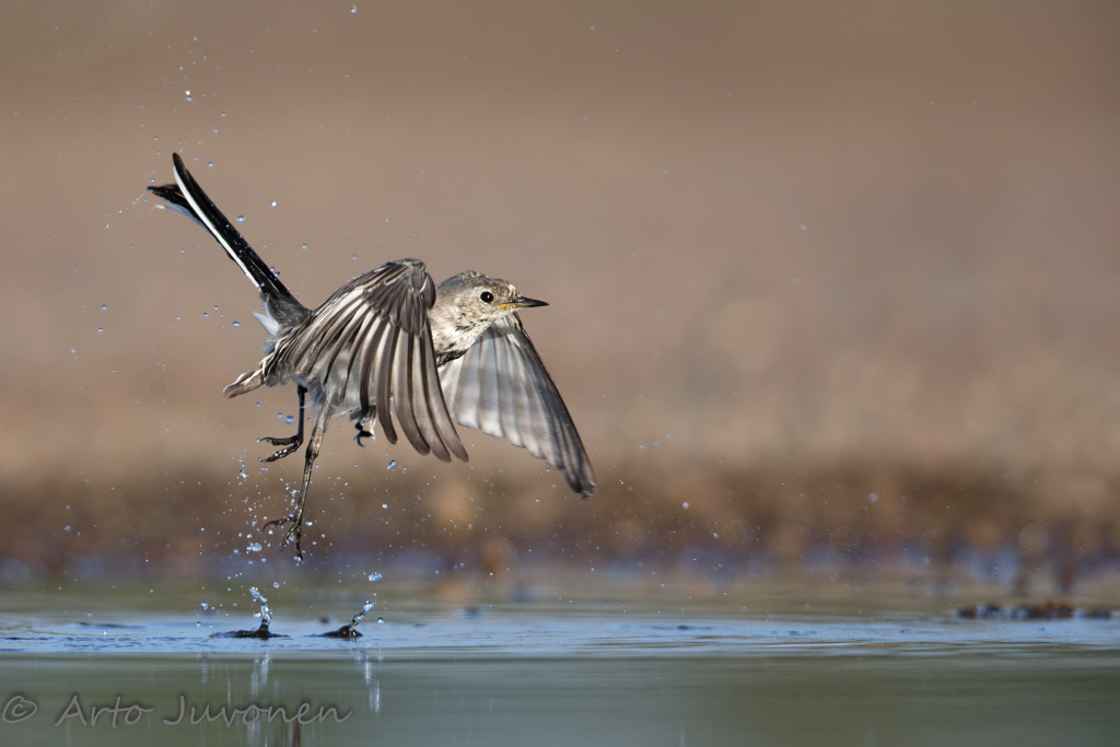A White Wagtail takes a short fly after a bath.