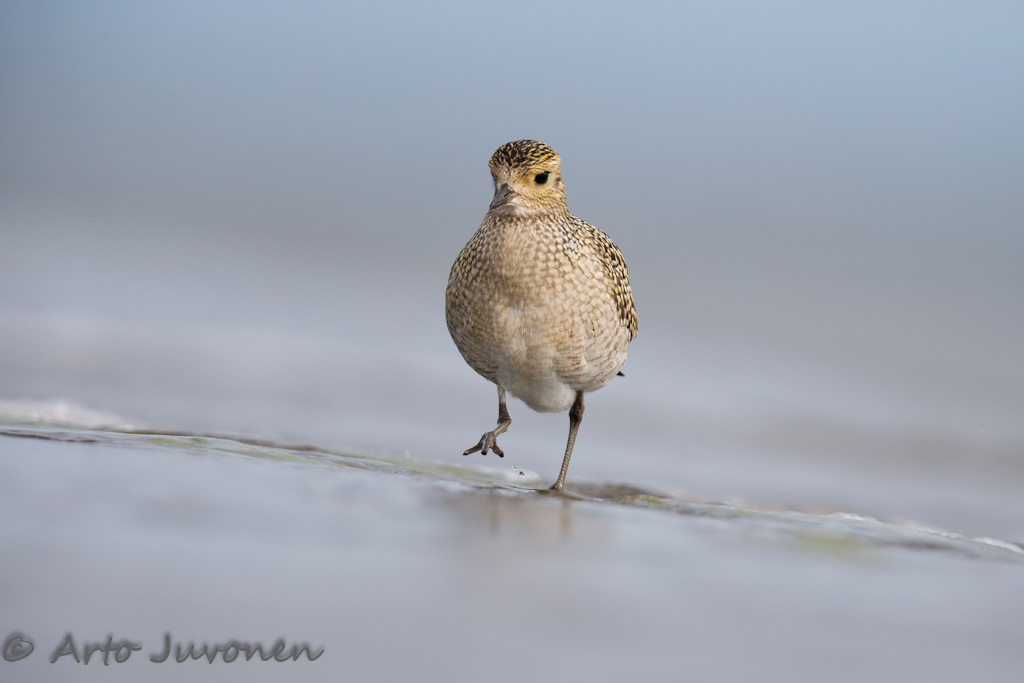 Golden Plover is a new species to me to have close-up pictures. This juvenile was feeding a shore on Saturday evening. The other picture is taken on special conditions, when the setting Sun lights up dark clouds behind the Plover.