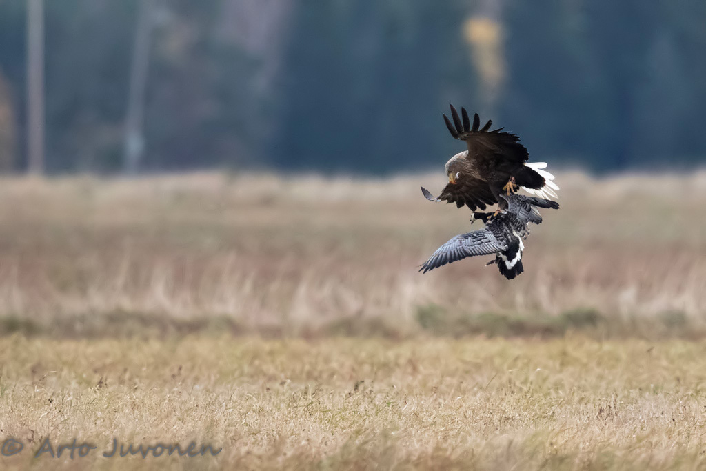 First week of my Autumn holiday is over. Most of day time of the holiday I have spent at fields near to Barnacle Geese flocks waiting for Eagles or Goshawks to hunt the geese. In the picture of the week is best I have got of hunting situation - below is a picture of Goshawk eating a barnacle Goose after a situation when I was near to get a picture I wanted. Our new book is out! This time also in English for non-Finnish readers! Have a copy by making an order through the link. Just click and you can also see four sample spreads from the book.