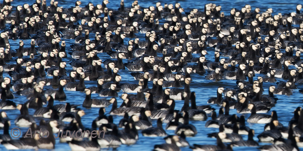 Vaikka en juurikaan keskittynyt itse hanhien kuvaamiseen, jotain kuitenkin tarttui kennolle Viikkariksi valitsin kuitenkin kuvan valkoposkien tiiviistä uimaparvesta.