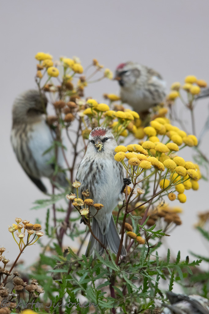 Redpolls in the picture of the week and Arctic Redpolls in additional picture and here in a video. Our new book is out! This time also in English for non-Finnish readers! Have a copy by making an order through the link. Just click and you can also see four sample spreads from the book.