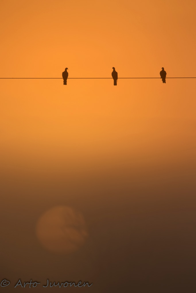 Autumn mornings with low laying mist and bright sky are possibility to get special pictures. Here are some woodpigeons sitting on a wire. An example about what is inside of the book (that will be published this autumn) is shown below. You may now make a preorder of the book.