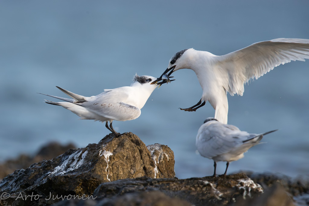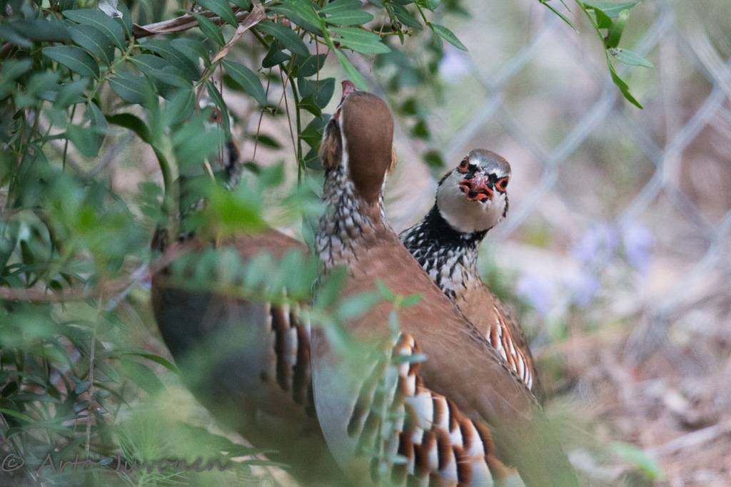 Mallorca 17. - 23.10.201317.10. TorstaiLokakuun alussa 2011 olimme Mallorcalla Alcuidan turistirannalla. Saari ympärillä oli retkeilyn arvoinen, mutta majapaikkamme todella tylsä. Jo silloin katsottiin brittilintuharrastajien suosimaa Port De Pollencaa sillä silmällä, että seuraavankin reissun voisimme tehdä, ja silloin majoittua tuohon pieneen rantakaupunkiin. Tai oikeastaan takaisin veti Cape de Formetorin välimerenhaukkojen vauhdikkaat ilmaleikit, joita ajattelin palata kuvaamaan hieman myöhempänä ajankohtana, kun lentopoikaset olisivat ilmassa kisailemassa.Nyt sitten herättiin Port de Pollencan rantahotellissa Hotelli Caprissa aamiaiselle muutaman tunnin unien jälkeen. Kone oli laskeutunut Palmaan kahden jälkeen yöllä, josta sitten onneksi pääsimme vauhdikkaasti hotellille. Ajattelin, että aamuhetki oli vähän myöhäinen lähteä välimerenhaukkoja kuvaamaan, joten päädyttiin Albuferan luontokeskuselle hakemaan lupia liikkumiseen puiston aukioloaikojen ulkopuolella. Ensin odotettiin riittävän korkea-arvoista virkamiestä lupia kirjoittamaan. Kun lupien kirjoittamiseen oikeutettu henkilö vihdoin saapui, opimme, ettei niitä lupia voinut saada ilman passeja, jotka eivät tietenkään olleet mukana. Räiskin jokusen huonon-valon kuvan kruununokikanoista ennen turhaantunutta paluumatkaa. Ensimmäisellä reissulla en kokeillut kertaakaan iltavaloja välimerenhaukkojen kuvauksissa, mutta nyt korjasin tilanteen heti. Vastavalo oli juuri niin hankala kuin odotinkin. Totesin kuitenkin, että se laiskan miehen paikka, näköalatasanne kärkeen vievän tien mutkassa toimii - ja että nuoria lintuja leikki ilmassa kuten olin odottanutkin. Olin melkein yhtä nopea kuin Varesvuo, mutta en kuitenkaan ihan. Refleksinomaisesti reagoin takanani kuivan maan puolella tapahtuvaan haukan syöksyyn. Sain tapahtuman jälkihöyhenet kuvaan, mutta en itse laulurastaan kuolemaa. Vanha muuttohaukka nappasi lennosta talvimatkallaan olevan rastaan. Vain höyhenet jäivät ilmaan leijumaan merkkaamaan iskupaikan. Hauskasti tuuli kuljetti nuo höyhenet juuri meidän seisomapaikallemme. 18.10. perjantaiKuu laskeutui hienosti taivaanrannan pilvivyöhön. Formentorin niemen majakalla oli lisäkseni pari muuta kuvaajaa, joiden mielenkiinto oli lähes samanaikaisessa kuun katoamisessa ja vastakkaiselle puolen tapahtuvassa auringon nousussa. Minä pidin kamerani vielä repussa. Odotin haukkojen heräämistä.Auringon noustua palasin takaisin vakiopaikalleni mutkan näköalatasanteelle päivystämään. Haukkanuorukaiset olivat aktiivisia, tarjoten useita näyttäviä leikkitilanteita ilmassa. Liikkeissään ne olivat melkeinpä liian nopeita, mutta kohteiden seuraaminen ei ollut se suurin ongelma vaan kameran tarkennus. Täytyy sanoa, ettei Mark IV:sta 1DX:ään ole tapahtunut kovin suurta edistystä, kun kohteen taustalla oli meren aallokko tai rantakallioden kirjo - vaikkakin kaukana kuvauskohteesta. Kerrankin leikkivä haukkapari melkein peitti ruudun, mutta silti tarkennus pysyi itsepintaisesti kirkkaansinisen meren kuohuissa. Joka tapauksessa ihan kivaa materiaalia syntyi, mutta hotellin hintaan sisältyvän aamiaistarjoilun päättymisaika rajasi viipymiseni - pihi mies kun olen, hintaan kuuluva aamiainen piti käyttää. Aamiaispöydässä katselin viereisen hotellin rantalaiturin päässä näkyvää tummaa tolppaa. Oikein, kiikareilla tolppa varmistui karimetsoksi. Kävin äkkiä hakemassa kamerarepun; onneksi oli koko reppu mukana, sillä linssiä piti lyhentää sitä mukaa kuin lintua lähenin. Olisi pitänyt vielä olla laajakulmakin mukana, tuumin makaillessani kosketusetäisyydellä uskomattoman pelottomasta karimetsosta. Päivällä kävin pikamarssilla Albuferan luontokeskuksella hakemassa luvat liikkumiseen aukioloaikojen ulkopuolella. Iltavaloihin suunnattiinkin sitten kosteikolle. Kaksi vuotta sitten sain olla Albuferan piilokojuissa luonnonpuiston aukioloaikojen ulkopuolella melkein yksin. Nyt keskuksen viereisessä piilossa rätisi kuin konekivääripesäkkeessä. Puolen tusinaa järkkäriä pitkine putkineen oli ampuma-aukoissa suunnattuna piilon aukoista ulos. Ihmettelin vähän aikaa touhua, räpsäisin muutaman kuvan piilon vieressä liikkuneesta kapustarinnasta, ja poistuin joukosta. Siirryttiin sillalle iltavaloihin kuvaamaan kruununokikanoja ja yöpymään lentäviä lehmähaikaroita. 19.10. lauantaiTällä kertaa söin vähän varhennetun aamupalan ennen niemelle siirtymistä. Hotellilta lähdin kahdeksalta, matkaan kalliotasanteelle menee alle puoli tuntia. Eli siis ihan se paras valon hetki jää käyttämättä, mutta maksettu aamiainen piti hyödyntää. Matkalla Formentorin metsätaipaleella kaksi eri punapyypoikuetta joutui kamerani eteen.Näköalatasanteelta katselin, että nyt olisi kannattanut olla korkeimmalla huipulla, jossa haukat eniten pyörivät leikkimässä. Jotain toki syntyi nytkin. Mikäli kuvauksia pystyisi harrastamaan pitkäjänteisesti, oppisi varmaankin ennustamaan, missä parhaat ilmavirtaukset houkuttelevat haukkoja lentelemään. Iltavalot vietettiin rantahiekalla. Valojen parantuessa pystytin kameran jalustalle, ja siirryin veteen. Auringonpalvojat ja muut rantaelämää viettävät kertyivät rannalle riviksi ihmettelemään, kun rupesin kahlaamaan kohti hietikon edustan karikkoa. Suolavesi huuhteli olkapäitäni, mutta turvalliseksi tiedusteltu reittini vei minut kuvausasemiin kameraa kastelematta. Päivän kuvauskelvottomissa valoissa oli ollut paremmin lintuja, mutta nytkin oli kuvattavissa sentään yksi nuori karimetso, muutama välimerenlokki ja riuttatiiraperhe. 20.10. sunnuntaiTänään oli sitten selvä ns. välipäivä. Mikään ei toiminut, vaikka yritystä ei puuttunut. Olin niemellä välimerenhaukkoja yrittämässä aamulla ja illalla. Aamulla haukat eivät vain lentäneet, ehkä sateenuhkaisen sään vuoksi. Illalla haukat leikkivät taas korkeimman huipun yllä. Päivällä käväistiin tiedustelemassa korppikotkatilann