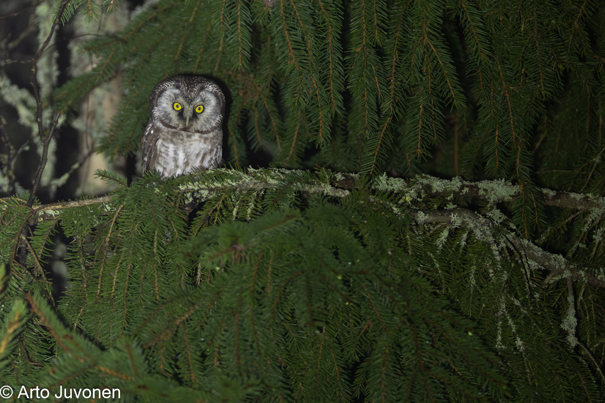 Helmipöllö Boreal OwlAegolius funereus Loviisa, 5.12.2025 Canon EOS R5m2 200 mm, f/7.1, 1/100 sec, ISO-10000. Hand held | |||
