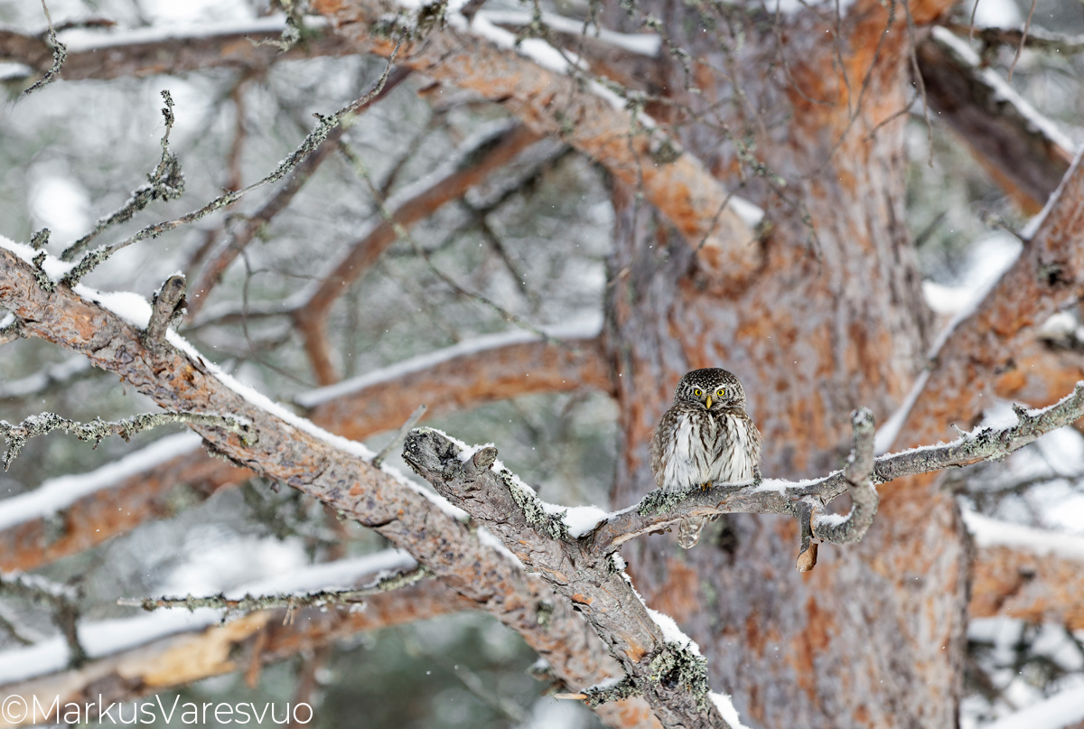 Aperture F-number f/4.5 Exposure Time: 1/640 ISO: 1600 Image information: Pygmy Owl (glaucidium passerinum) Kuusamo Finland February 2016 Time from camera: 2016:02:24 Copyright: Markus Varesvuo Pursilahdenranta 2B22 00980 Helsinki Finland +358405033831 markus.varesvuo@lintukuva.fi Camera: Canon EOS 5DS R Focal Length: 170/1 | |