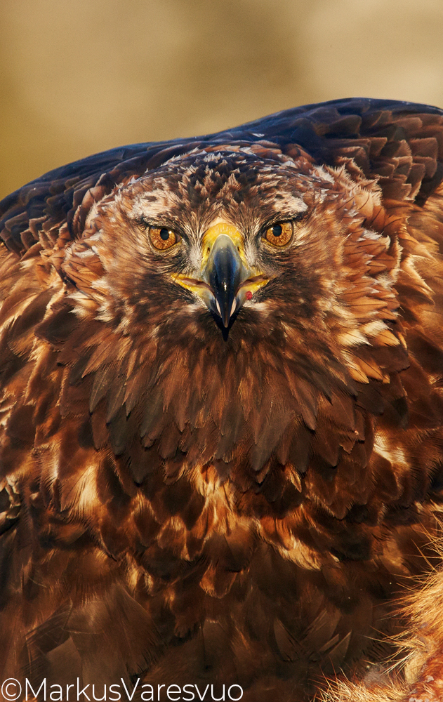 Aperture F-number f/14.0 Exposure Time: 1/320 ISO: 1250 Image information: Golden Eagle adult (Aquila chrysaetos) eating Fox Norway November 2013 Time from camera: 2013:11:21 Copyright: Markus Varesvuo Pursilahdenranta 2B22 00980 Helsinki Finland +358405033831 markus.varesvuo@lintukuva.fi Camera: Canon EOS-1D X Focal Length: 1200/1 | |