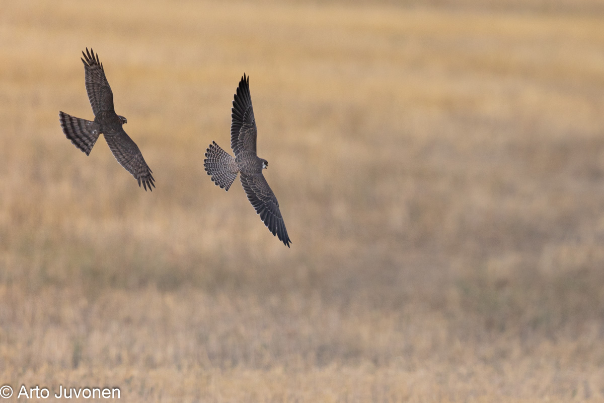Aperture F-number f/4.0 Exposure Time: 1/3200 ISO: 500 Image information: Falco vespertinus; Red-footed Falcon; Punajalkahaukka. Juvenile cahsed by a sparrowhawk. Finland Time from camera: 2022:09:04 Copyright: Arto Juvonen Camera: Canon EOS R6 Focal Length: 600/1 | |