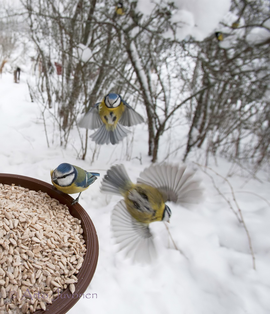 Viikonkuvana on noutopöytä. Lähilinssillä kuvattaessa on todella vaikeaa saada linnut riittävän lähelle linssiä, muuten kuin ruualla houkuttelemalla. Se on helppoa vaikkapa kotipihan ruokintapaikalla. Muualla on vaikeampaa.