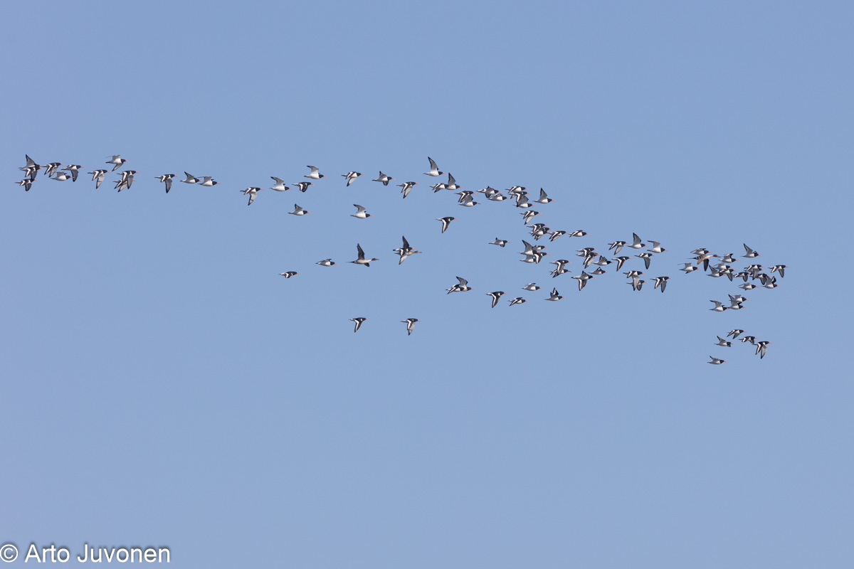 Meriharakat ja muutama jouhisorsa Eurasian Oystercatcher and Common PintailsHaematopus ostralegus & anas acuta 3.4.2023 Canon EOS R6, 600mm, f/9, ISO-800, 1/2000 sec, Hand held |