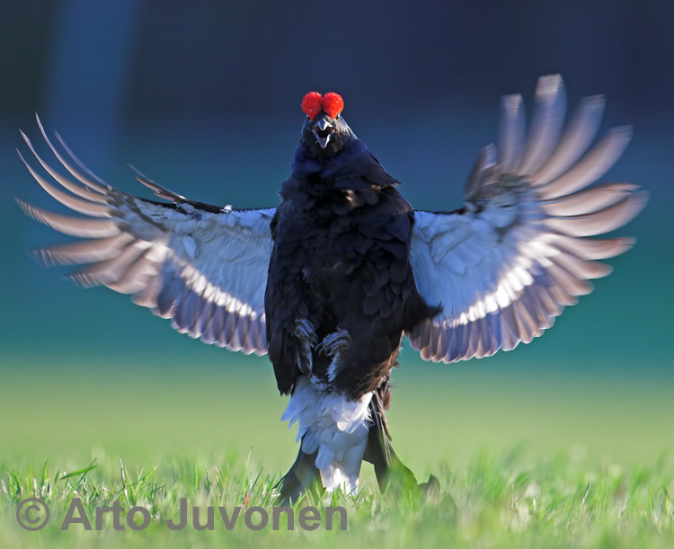 For Black Grouses Cocks this is the time to get prizes. Over one month of fighting and puffing get the climax, when females arrive for copulation. One second per a female and totally seven female for the main cocks and that's it! Mating started yesterday and most probably is over tomorrow. The main Cocks are suffered because of a lot of all fighting, mainly against each other. Other one have lost other half of its tail and the other have damaged his eye.