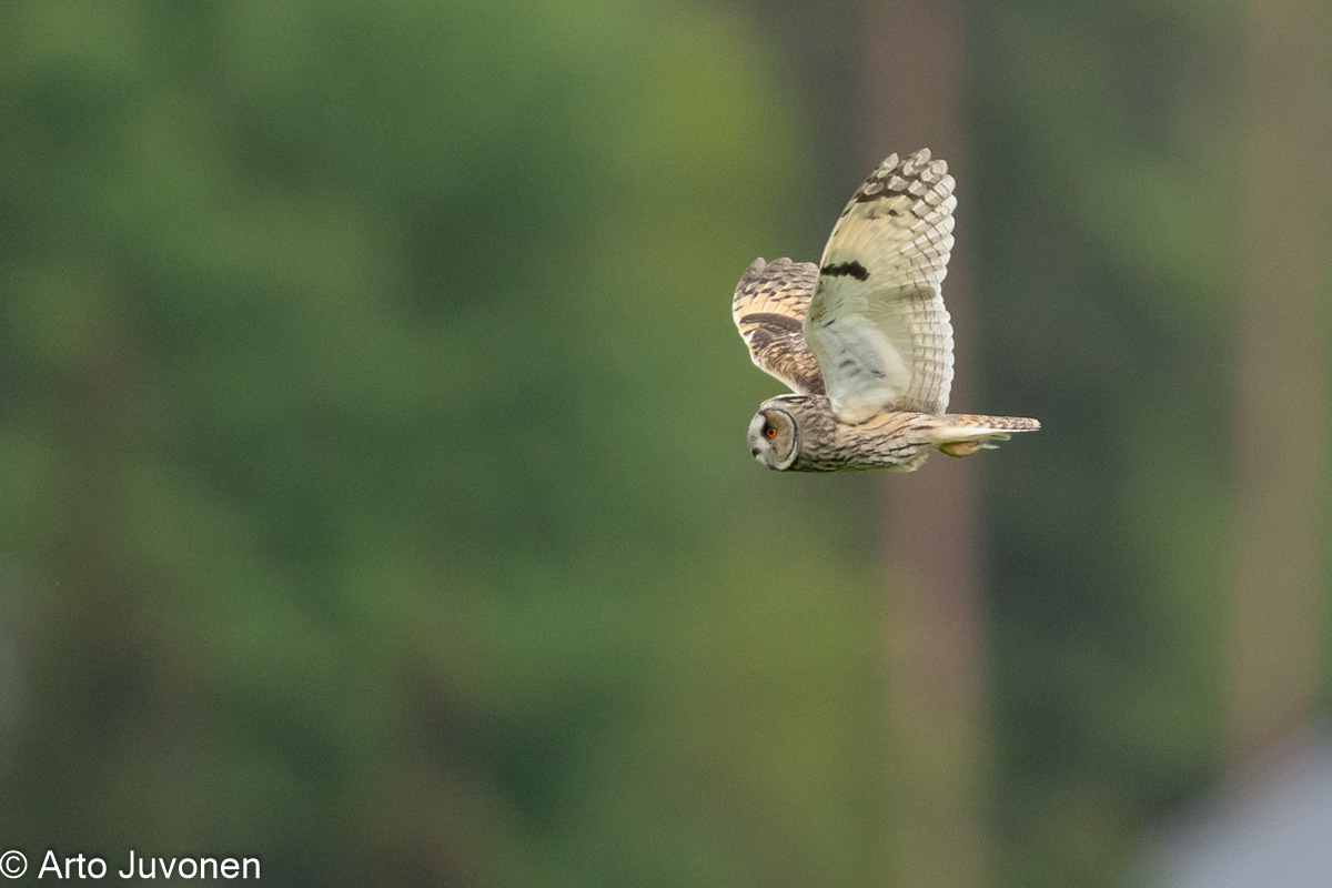 Sarvipöllö Long-eared OwlAsio otus 29.5.2022 Loviisa, Finland Canon EOS R6, 600mm, f/4, ISO-2000, 1/3200 sec, hand held |