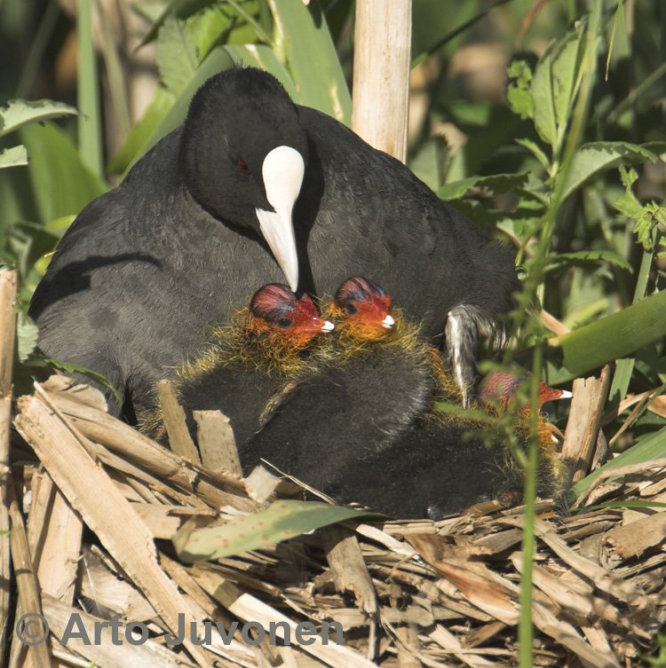 Kuvassa nokikanat Coots - Fulica atra Lapinjärvi, Finland, 7.6.2007 Canon 20D, 500 mm f4/L IS USM * 1.4 ext. | ||