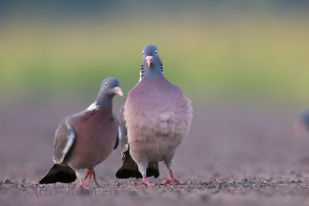 Viikonvaihteessa hämmästytin ohikulkijoita kojuttamalla tien pientareella. Heille varmaan jäi epäselväksi, kuvasinko ohiajavia autoilijoita vai mitä, koska harvemmin tiellä oli mitään muita kohteita. Eräässä tietyssä hiekkatien mutkassa on aina ollut kyyhkyjä, tavallisesti sepel- ja uuttu-, mutta joskus myös turturikyyhkyjä. Uskoisin, että paikalla on jotain tiettyä mineraalia, jota kyyhkyt käyvät hakemassa.