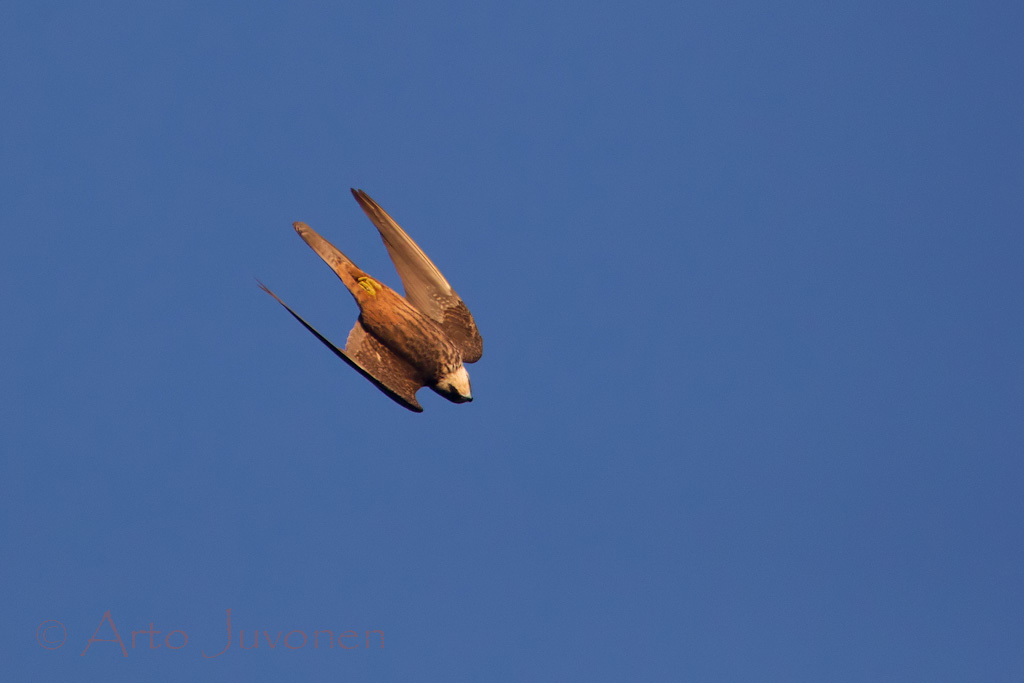 The weeks picture have color tones same as in many of pictures of the fresh book of Birdphoto.fi team "Birds and Light of Snow" (available only in Finnish), but as the bird is an Audouin's Gull, it is not reflecting light of snow, but sand from a beach of Mallorca. Below is more pictures taken during a holiday at Mallorca. I spent four mornings with Eleonora's Falcons. Two of days was calm and Falcons did not fly so much, but during two windy mornings they were really active. it was pleasure to follow their play in the air with circling, playing together, full speed dives etc.