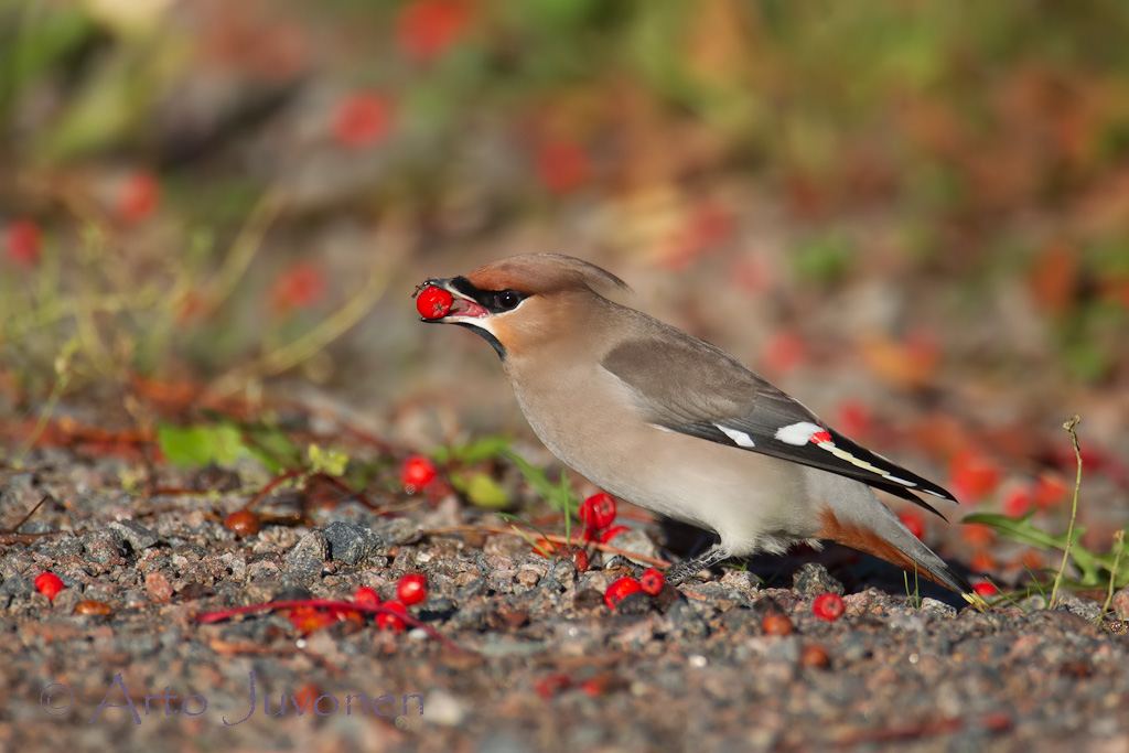 Tilhi Bohemian Waxwing Bombygilla garrulus Loviisa, Finland, 9.10.2011 Canon EOS 1D Mark IV, EF 500 mm F/4 L IS USM * 1.4 ext., f/5.6, ISO-640, 1/3200 sec, taken from a car |