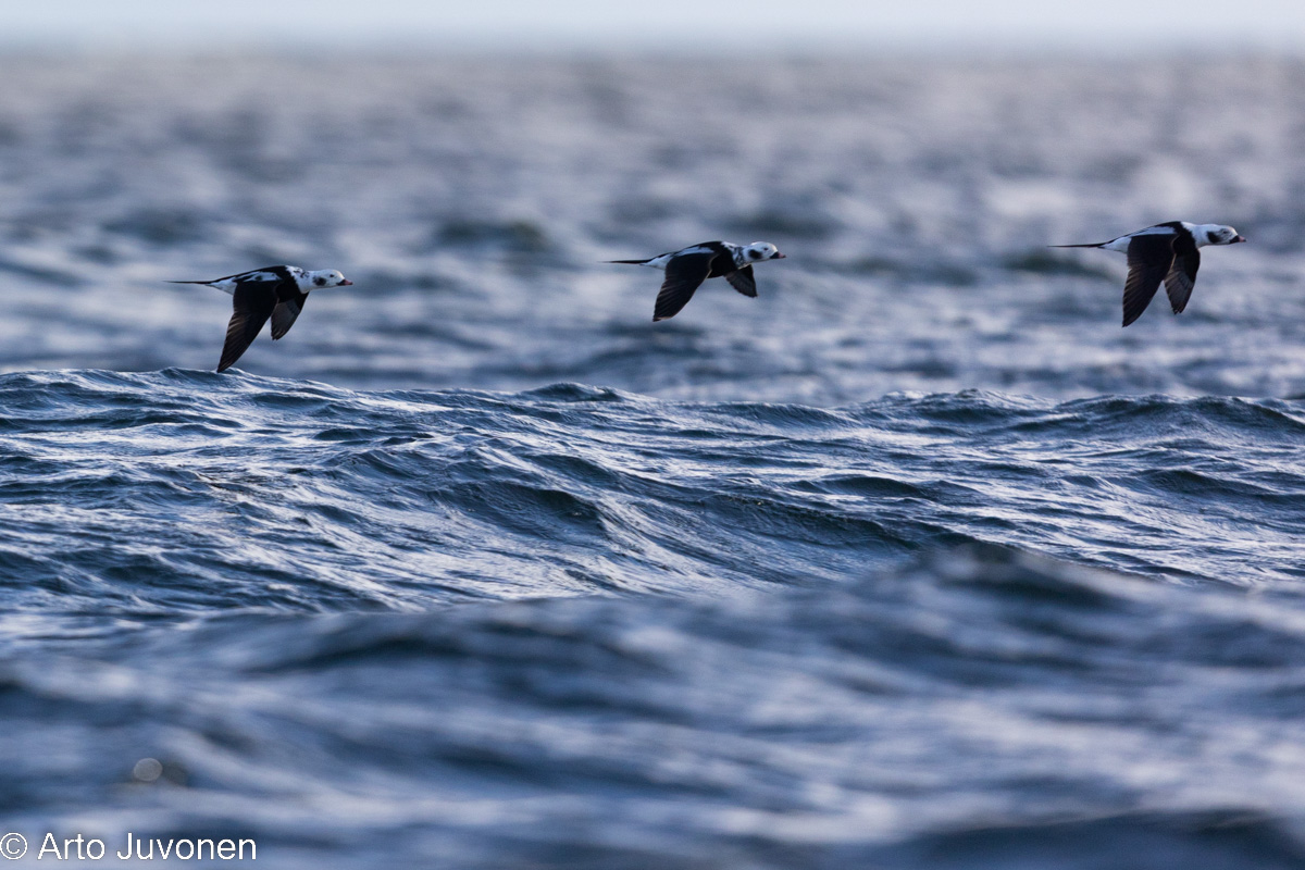Winds from Southern directions have pushed migration stream of long-tailed ducks (and other arctic ducks) to go along Finnish coast. I was out at sea to try some pictures of migrating flocks, but the circumstances were too rough for my little boat.