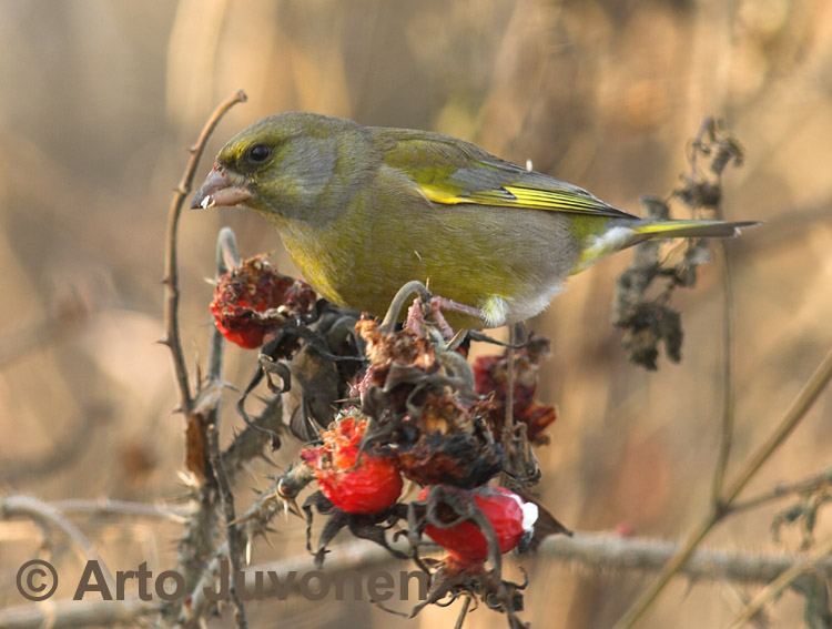 Viikon kuvassa viherpeippo The Weeks Picture - Greenfinch Carduelis chloris Loviisa 20.11.2005 Canon 20D, 300 mm f4/L IS USM |