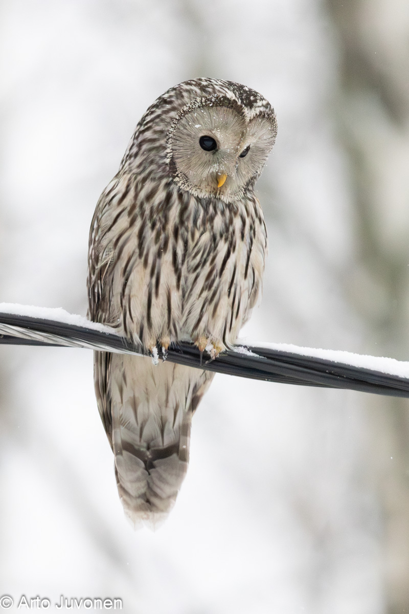 Viirupöllö Ural Owl Strix uralensis Loviisa 29.11.2023 Canon EOS R6, 600 mm, f/4, ISO-20000, 1/2500 sec, Hand held |