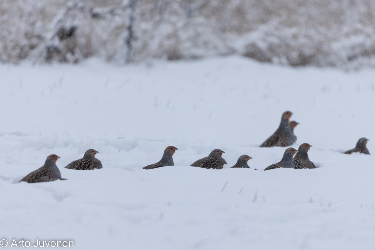 Peltopyy Grey PartridgePerdix perdix 7.12.2022 Lapinjärvi Canon EOS R6, 600mm, f/4, ISO-2000, 1/3200 sec, Hand held |