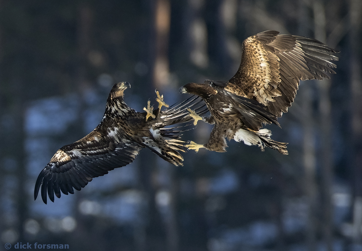 5 Mar 2021, Kirkkonummi,Finland. Ei vieläkään mitään uutta ja julkaisukelpoista, siispä turvauduttava varastojen kätköihin. Kaksi nuorta ensimmäisen talven merikotkaa ottamassa mittaa toisistaan, ihan vaan leikkimielellä. Canon Eos R5 + Canon EF 600mm III + 1,4x F5,6, 1/2500s, ISO 640