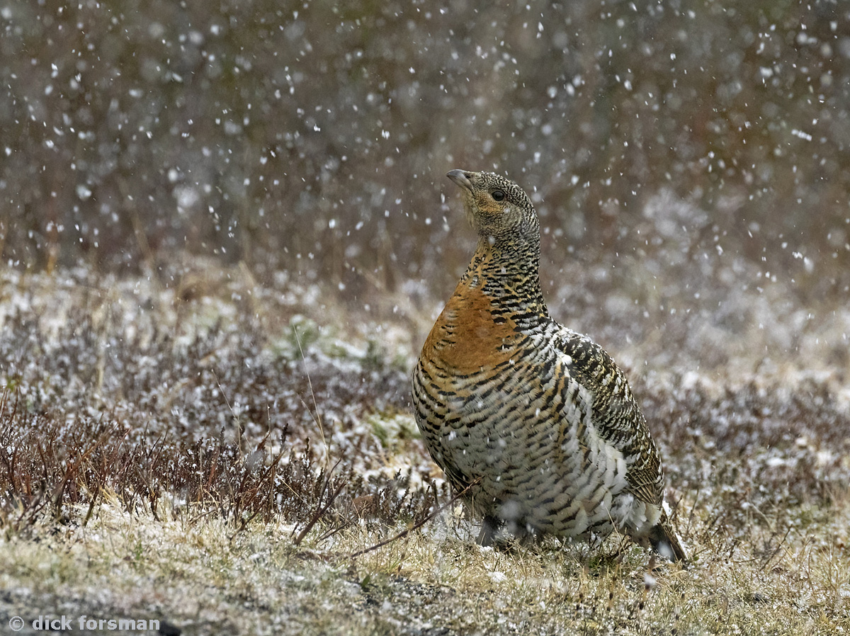 Winter strikes back. Female Western Capercaillie (Tetra urogallus) in late May, N Finland |
