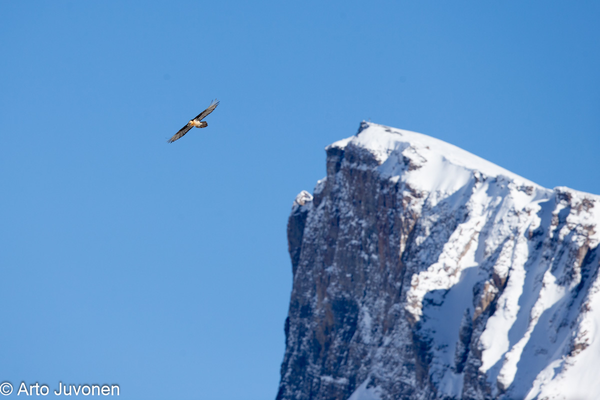 | Kuva/Picture: 9gypbar302 Aperture F-number f/5.6 Exposure Time: 1/2500 ISO: 200 Image information: Gybaetus barbatus, Beared Vulture, Lammergeier, partakorppikotka. Gemmipass, Switzerland Time from camera: 2016:03:10 Copyright: Arto Juvonen Camera: Canon EOS-1D X Focal Length: 600/1 | |