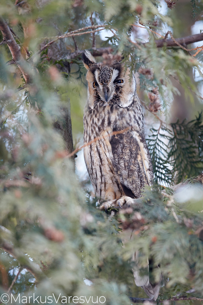 Aperture F-number f/4.0 Exposure Time: 1/320 ISO: 2500 Image information: Long-eared Owl (Asio otus) Helsinki Finland February 2017 Time from camera: 2017:02:06 Copyright: Markus Varesvuo Leikosaarentie 31B49 00990 Helsinki Finland +358405033831