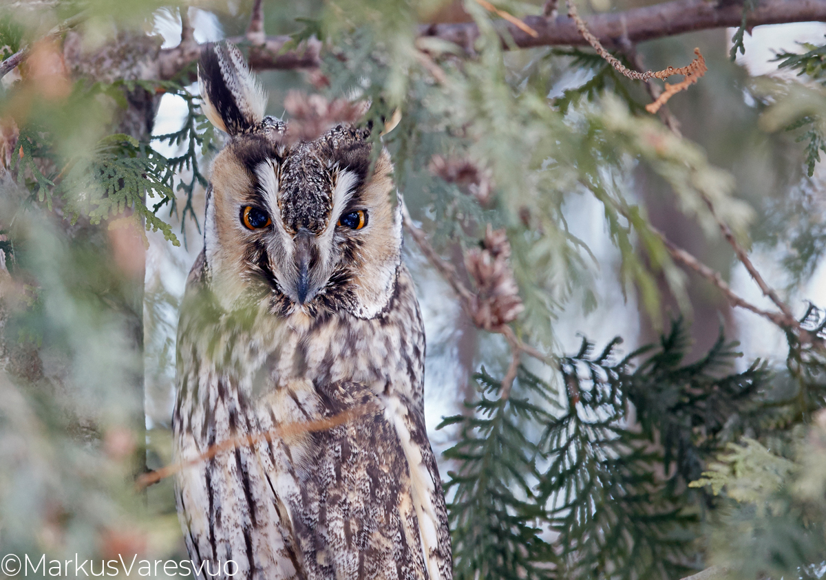 Aperture F-number f/4.0 Exposure Time: 1/100 ISO: 1250 Image information: Long-eared Owl (Asio otus) Helsinki Finland February 2017 Time from camera: 2017:02:06 Copyright: Markus Varesvuo Leikosaarentie 31B49 00990 Helsinki Finland +358405033831
