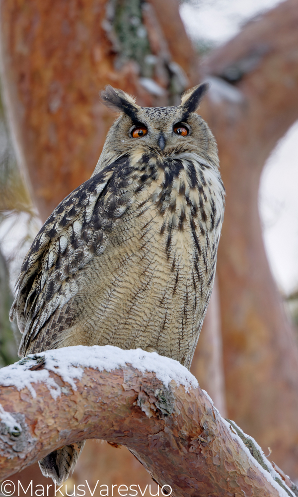 Aperture F-number f/5.6 Exposure Time: 1/80 ISO: 400 Image information: Eagle Owl (Bubio bubo) Helsinki Finland December 2006 Time from camera: 2006:12:19 Copyright: Markus Varesvuo Pursilahdenranta 2B22 00980 Helsinki Finland +358405033831 markus.varesvuo@lintukuva.fi Camera: Canon EOS-1Ds Mark II Focal Length: 700/1 | |