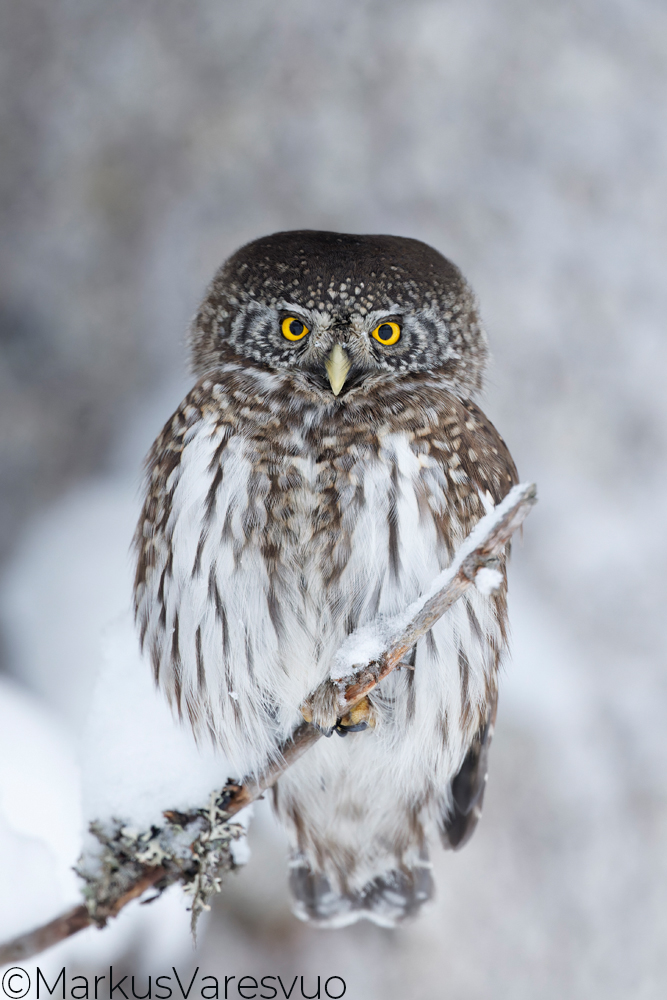 Aperture F-number f/4.5 Exposure Time: 1/800 ISO: 2500 Image information: Pygmy Owl (Glaucidium passerinum) Kuusamo Finland February 2023. Time from camera: 2021:02:06 Copyright: Markus Varesvuo Pursilahdenranta 2B22 00980 Helsinki Finland +358405033831 markus.varesvuo@lintukuva.fi Camera: Canon EOS R5 Focal Length: 600/1 | |