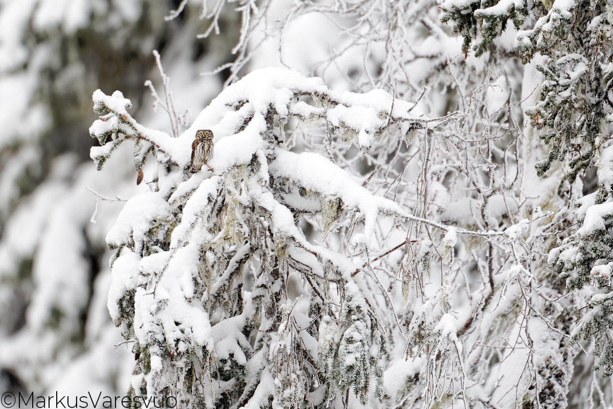 Aperture F-number f/4.0 Exposure Time: 1/1250 ISO: 2000 Image information: Pygmy Owl (Glaucidium passerinum) Kuusamo Finland January 2008 Time from camera: 2008:01:26 Copyright: Markus Varesvuo Pursilahdenranta 2D5400980 Helsinki Finland. mobile +358405033831. markus.varesvuo@lintukuva.fi Camera: Canon EOS-1D Mark III Focal Length: 500/1 | |