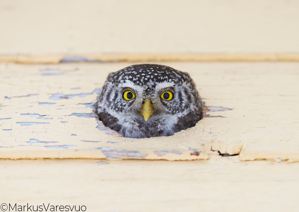 Aperture F-number f/5.0 Exposure Time: 1/800 ISO: 1600 Image information: Pygmy Owl (glaucidium passerinum) Kuusamo Finland February 2016 Time from camera: 2016:02:24 Copyright: Markus Varesvuo Pursilahdenranta 2B22 00980 Helsinki Finland +358405033831 markus.varesvuo@lintukuva.fi Camera: Canon EOS-1D X Focal Length: 400/1 | |