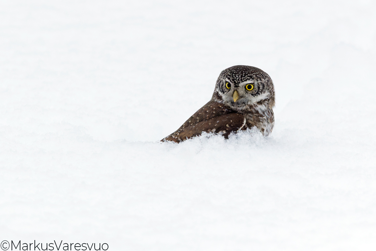 Aperture F-number f/11.0 Exposure Time: 1/4000 ISO: 12800 Image information: Pygmy Owl (glaucidium passerinum) Kuusamo Finland February 2016 Time from camera: 2016:02:28 Copyright: Markus Varesvuo Pursilahdenranta 2B22 00980 Helsinki Finland +358405033831 markus.varesvuo@lintukuva.fi Camera: Canon EOS-1D X Mark II Focal Length: 400/1 | |