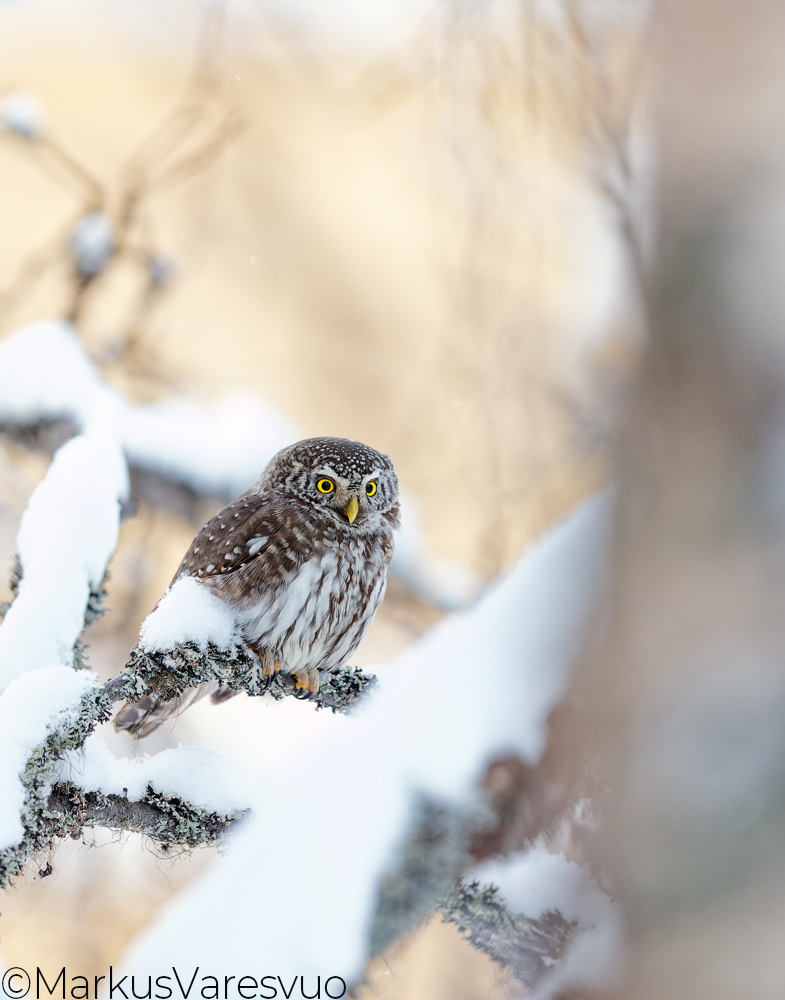 Aperture F-number f/4.0 Exposure Time: 1/250 ISO: 2500 Image information: Pygmy Owl (glaucidium passerinum) Kuusamo Finland February 2016 Time from camera: 2016:02:28 Copyright: Markus Varesvuo Pursilahdenranta 2B22 00980 Helsinki Finland +358405033831 markus.varesvuo@lintukuva.fi Camera: Canon EOS-1D X Mark II Focal Length: 600/1 | |