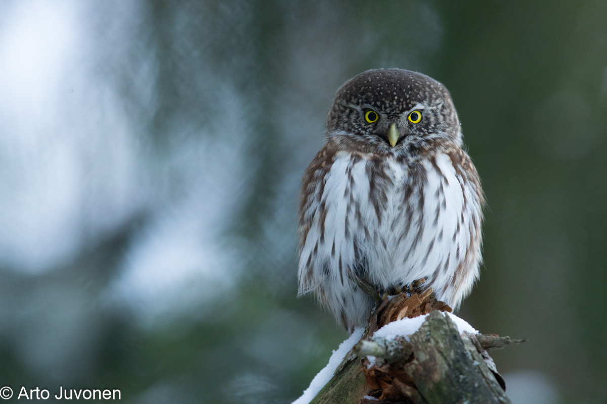 Aperture F-number f/5.6 Exposure Time: 1/160 ISO: 3200 Image information: Glaucidium passerinum, (IN)Eurasian Pygmy Owl, (EN) Pygmy Owl, (US)Eurasian Pygmy Owl , (FI) varpuspöllö, (DE) Sperlingskauz, (SV) Sparvuggla, (FR) Chevêchette d'Europe, (ES) Mochuelo alpino, (CA) Mussol menut, (IT) Civetta nana, (NL) Dwerguil, (DA) Spurveugle, (NO) Spurveugle, (PT) Mocho-pigmeu. Finland Time from camera: 2015:01:24 Copyright: Arto Juvonen Camera: Canon EOS-1D X Focal Length: 600/1 | |