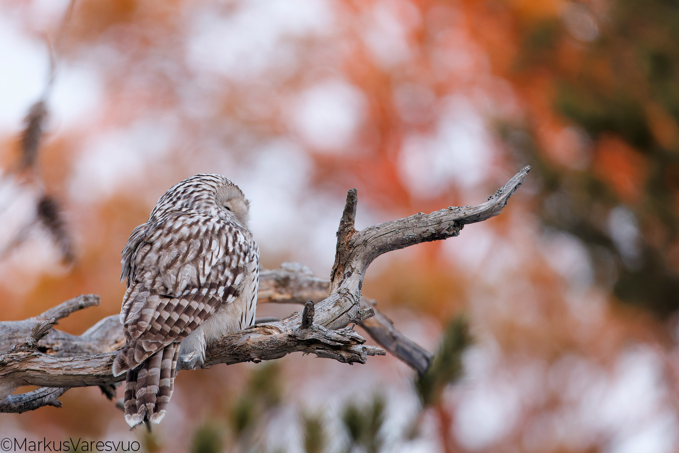 Aperture F-number f/4.0 Exposure Time: 1/640 ISO: 8000 Image information: Ural Owl (Strix uralensis) Helsinki Finland March 2024 Time from camera: 2024:03:11 Copyright: Markus Varesvuo Pursilahdenranta 2B22 00980 Helsinki Finland +358405033831 markus.varesvuo@lintukuva.fi Camera: Canon EOS R3 Focal Length: 600/1 | |