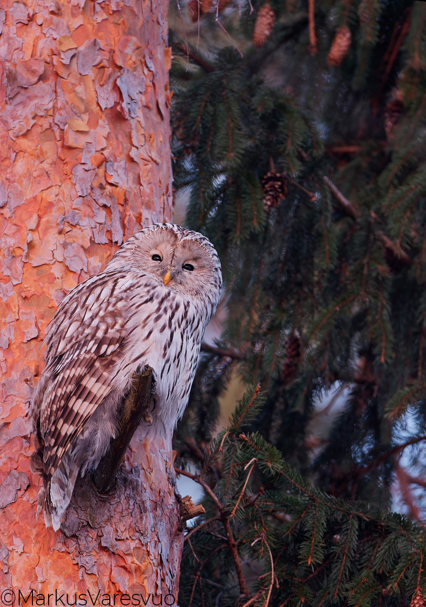 Aperture F-number f/4.0 Exposure Time: 1/25 ISO: 4000 Image information: Ural Owl (Strix uralensis) Helsinki Finland March 2024 Time from camera: 2024:03:12 Copyright: Markus Varesvuo Pursilahdenranta 2B22 00980 Helsinki Finland +358405033831 markus.varesvuo@lintukuva.fi Camera: Canon EOS R3 Focal Length: 600/1 | |