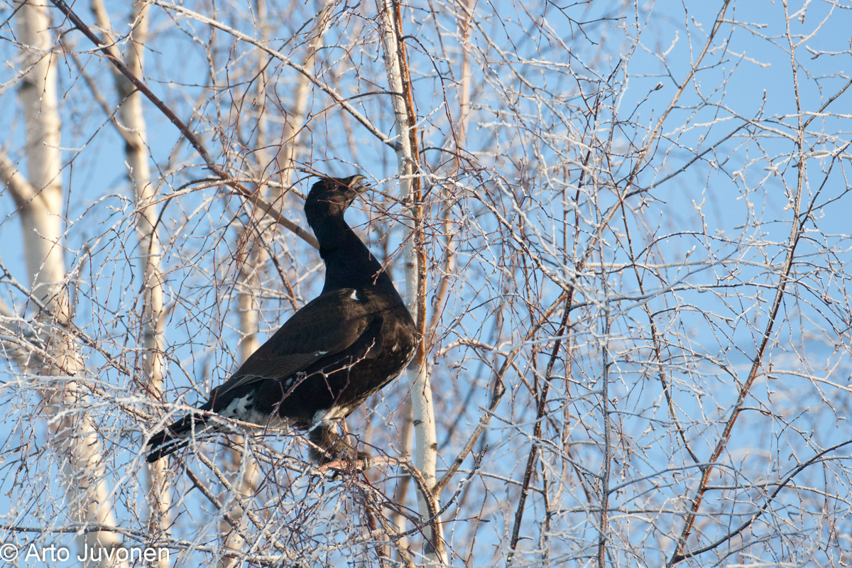 Aperture F-number f/5.6 Exposure Time: 1/1600 ISO: 640 Image information: Tetrao urogallus x T. tetrix; Capercaillie x Black Grouse; Metso x Teeri. Porvoo, Finland Time from camera: 2009:02:03 Copyright: Arto Juvonen Camera: Canon EOS-1D Mark III Focal Length: 500/1 | |
