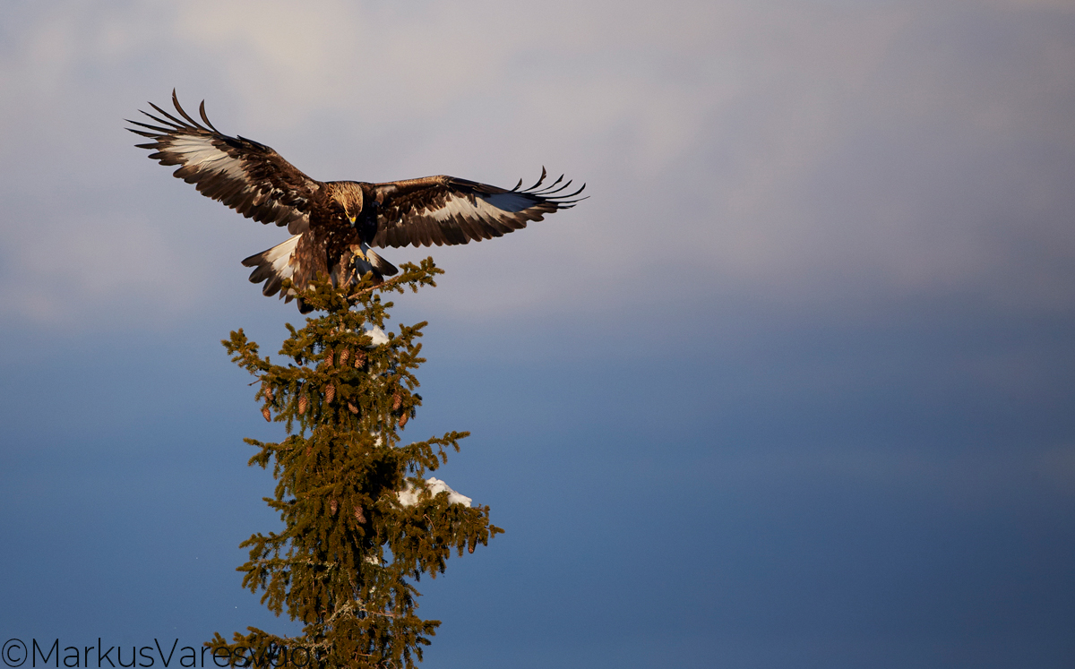 Aperture F-number f/6.3 Exposure Time: 1/3200 ISO: 800 Image information: Golden Eagle (Aquila chrysaetos) Norway March 2016. Time from camera: 2016:03:08 Copyright: Markus Varesvuo Pursilahdenranta 2B22 00980 Helsinki Finland +358405033831 markus.varesvuo@lintukuva.fi Camera: Canon EOS-1D X Focal Length: 560/1 | |