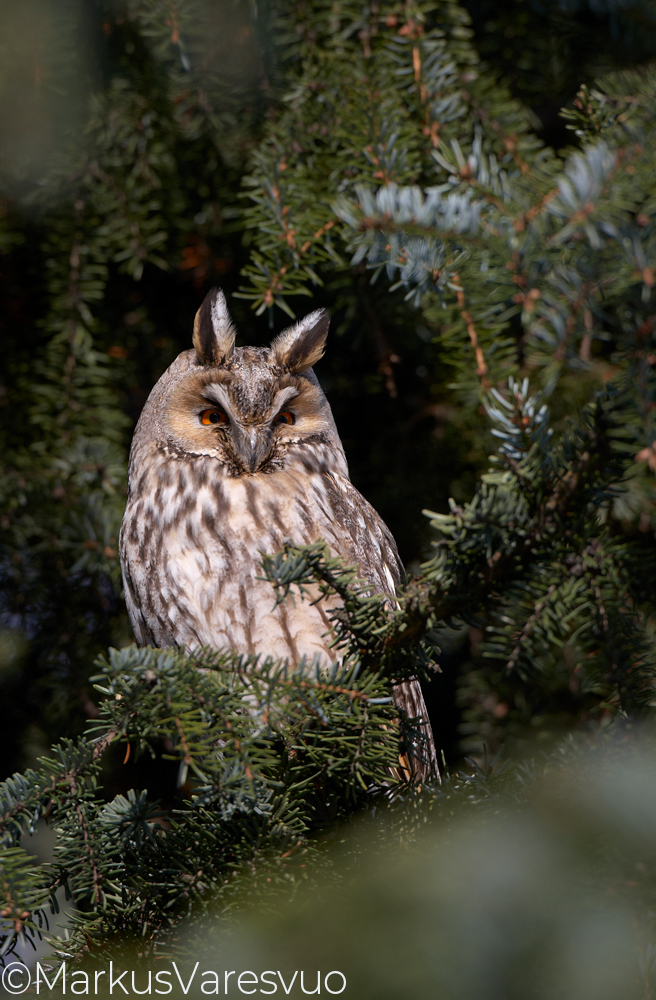 Aperture F-number f/6.3 Exposure Time: 1/320 ISO: 125 Image information: Long-eared Owl (Asio otus) Helsinki Finland March 2006 Time from camera: 2006:03:21 Copyright: Markus Varesvuo Leikosaarentie 31B49 00990 Helsinki Finland+358405033831 markus.varesvuo@lintukuva.fi