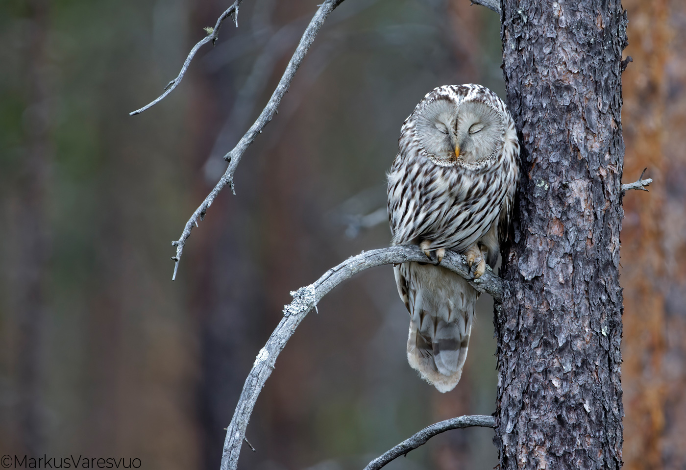 Aperture F-number f/8.0 Exposure Time: 1/250 ISO: 2500 Image information: Ural Owl sleeping (Strix uralensis) Vaala Finland May 2019 Time from camera: 2019:05:22 Copyright: Markus Varesvuo Pursilahdenranta 2B22 00980 Helsinki Finland +358405033831 markus.varesvuo@lintukuva.fi Camera: Canon EOS-1D X Mark II Focal Length: 1200/1 | |