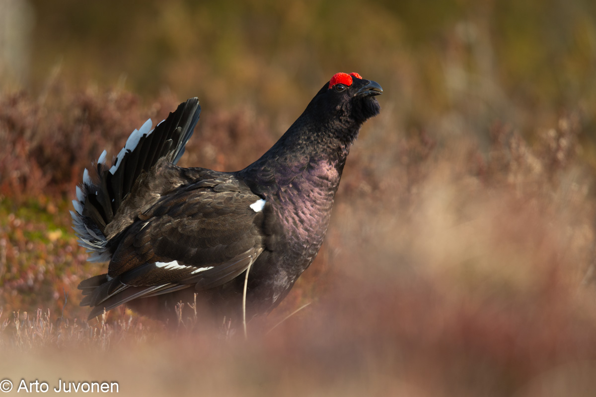Aperture F-number f/5.6 Exposure Time: 1/200 ISO: 320 Image information: Tetrao urogallus x T. tetrix; Capercaillie x Black Grouse; Metso x Teeri. Porvoo, Finland Time from camera: 2014:04:17 Copyright: Arto Juvonen Camera: Canon EOS-1D X Focal Length: 840/1 | |