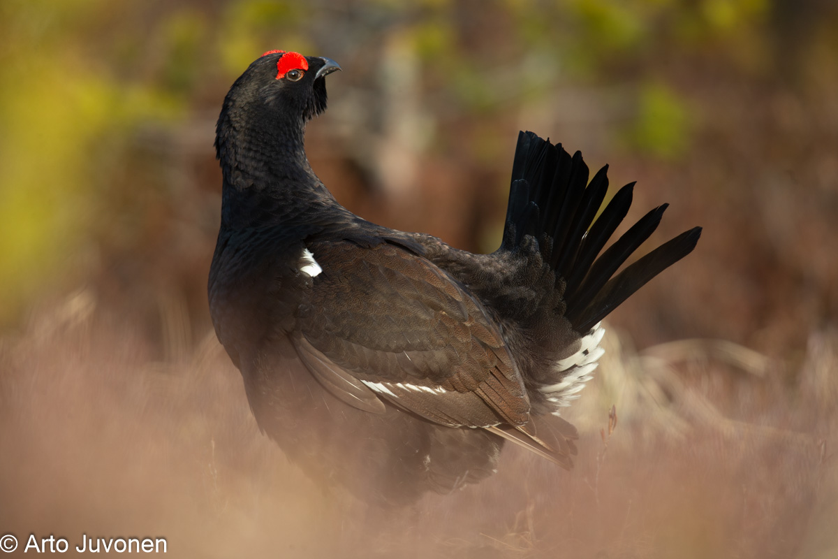 Aperture F-number f/6.3 Exposure Time: 1/200 ISO: 400 Image information: Tetrao urogallus x T. tetrix; Capercaillie x Black Grouse; Metso x Teeri. Porvoo, Finland Time from camera: 2014:04:17 Copyright: Arto Juvonen Camera: Canon EOS-1D X Focal Length: 840/1 | |