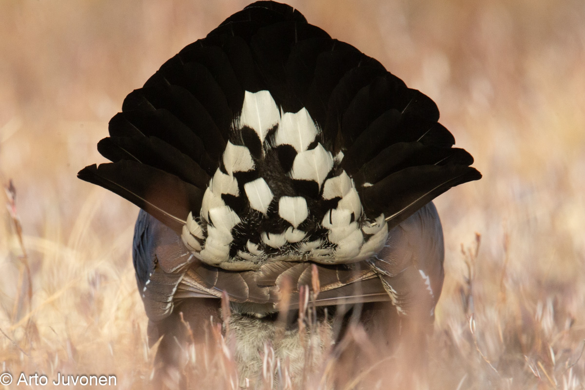 Aperture F-number f/14.0 Exposure Time: 1/200 ISO: 800 Image information: Tetrao urogallus x T. tetrix; Capercaillie x Black Grouse; Metso x Teeri. Porvoo, Finland Time from camera: 2014:04:17 Copyright: Arto Juvonen Camera: Canon EOS-1D X Focal Length: 840/1 | |