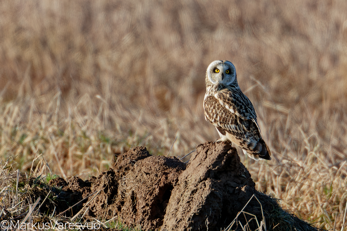 Aperture F-number f/8.0 Exposure Time: 1/500 ISO: 400 Image information: Short-eared Owl (Asio flammeus)Liminka Finland May 2005 Time from camera: 2005:05:13 Copyright: Markus Varesvuo Pursilahdenranta 2B22 00980 Helsinki Finland +358405033831 markus.varesvuo@lintukuva.fi Camera: Canon EOS-1D Mark II Focal Length: 1000/1 | |